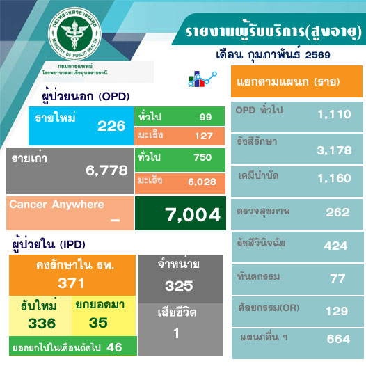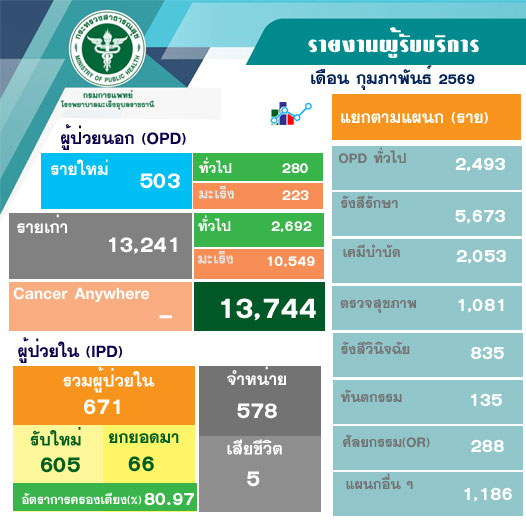 ผู้มารับบริการเดือน กุมภาพันธ์ 2569 ณ รพ.มะเร็งอุบลราชธานี