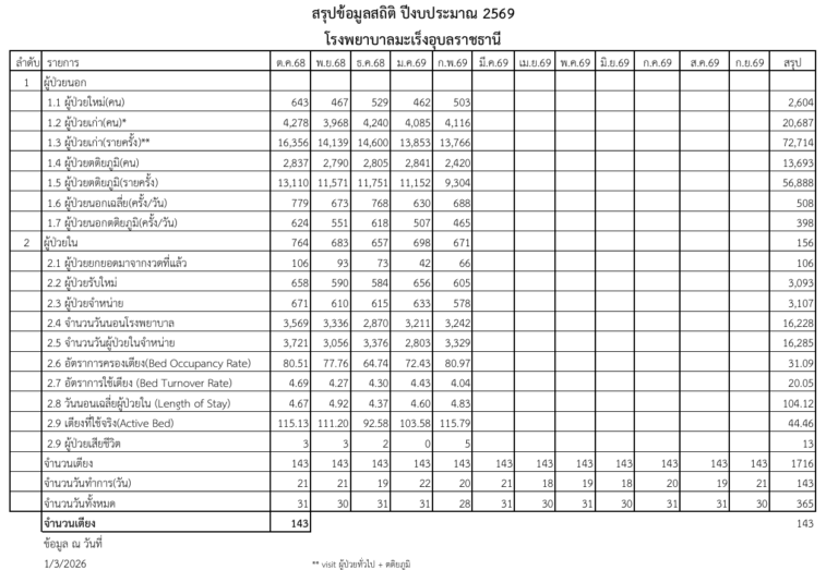 ผู้มารับบริการเดือน มกราคม 2569 ณ รพ.มะเร็งอุบลราชธานี