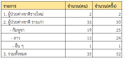 รายงานผู้ป่วยต่างชาติวันที่ 25 กันยายน 2568