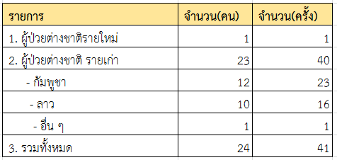 รายงานผู้ป่วยต่างชาติวันที่ 26 กันยายน 2568