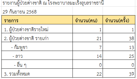 รายงานผู้ป่วยต่างชาติวันที่ 29 กันยายน 2568
