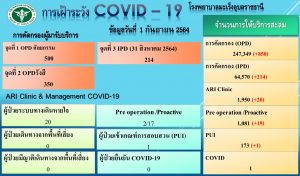 แพทย์หญิงชุติวรรณ วิวัฒนาสิทธิพงศ์ รองผู้อำนวยการด้านการแพทย์ ดร.ชลิยา วามะลุน รองผู้อำนวยการด้านการพยาบาล ทันตแพทย์หญิงญาณิศา ศรศิลป์ รองผู้อำนวยการด้านพัฒนาระบบสุขภาพ และสหสาขาวิชาชีพของโรงพยาบาลมะเร็งอุบลราชธานี ดำเนินงาน DMS Satellite Home Isolation โรงพยาบาลมะเร็งอุบลราชธานี ร่วมกับหน่วยงานส่วนกลางในสังกัดกรมการแพทย์ ในการจัดบริการ การกำกับติดตาม การรับผู้ป่วย COVID-19 เข้าสู่ระบบบริการ Home Isolation ในวันจันทร์ที่ 6 กันยายน 2564 ณ ห้อง DMS Satellite HI ชั้น 6 อาคารอำนวยการผู้ป่วยนอกและรังสีวินิจฉัย โรงพยาบาลมะเร็งอุบลราชธานี