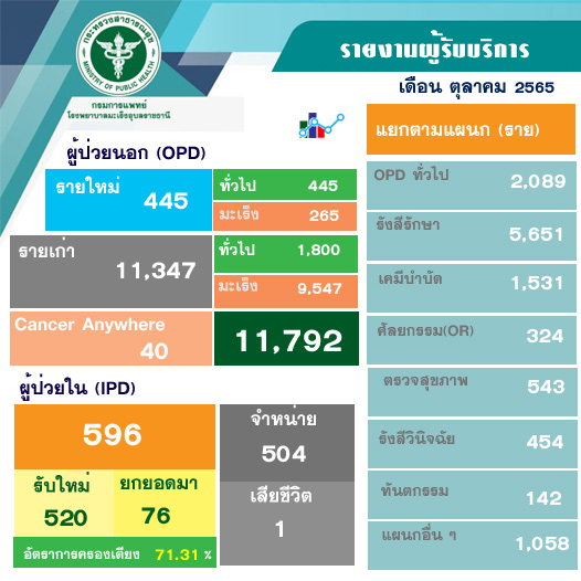 ผู้มารับบริการเดือนตุลาคม 2565 ณ รพ.มะเร็งอุบลราชธานี
