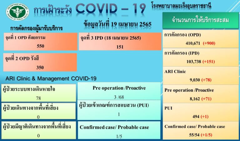 ผู้มารับบริการเดือนเมษายน 2565 ณ รพ.มะเร็งอุบลราชธานี