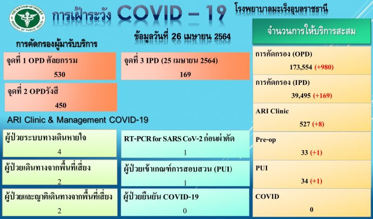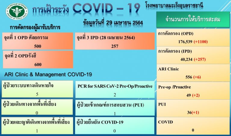 สรุปตัวเลขผู้มารับบริการ ณ โรงพยาบาลมะเร็งอุบลราชธานี เดือนเมษายน 2564 มีรายละเอียดดังต่อไปนี้