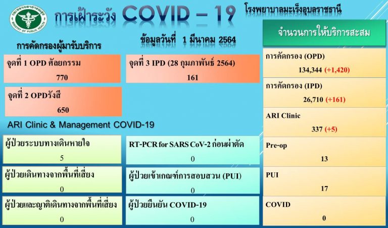 สรุปตัวเลขผู้มารับบริการ ณ โรงพยาบาลมะเร็งอุบลราชธานี เดือนกุมภาพันธ์ 2564 มีรายละเอียดดังต่อไปนี้