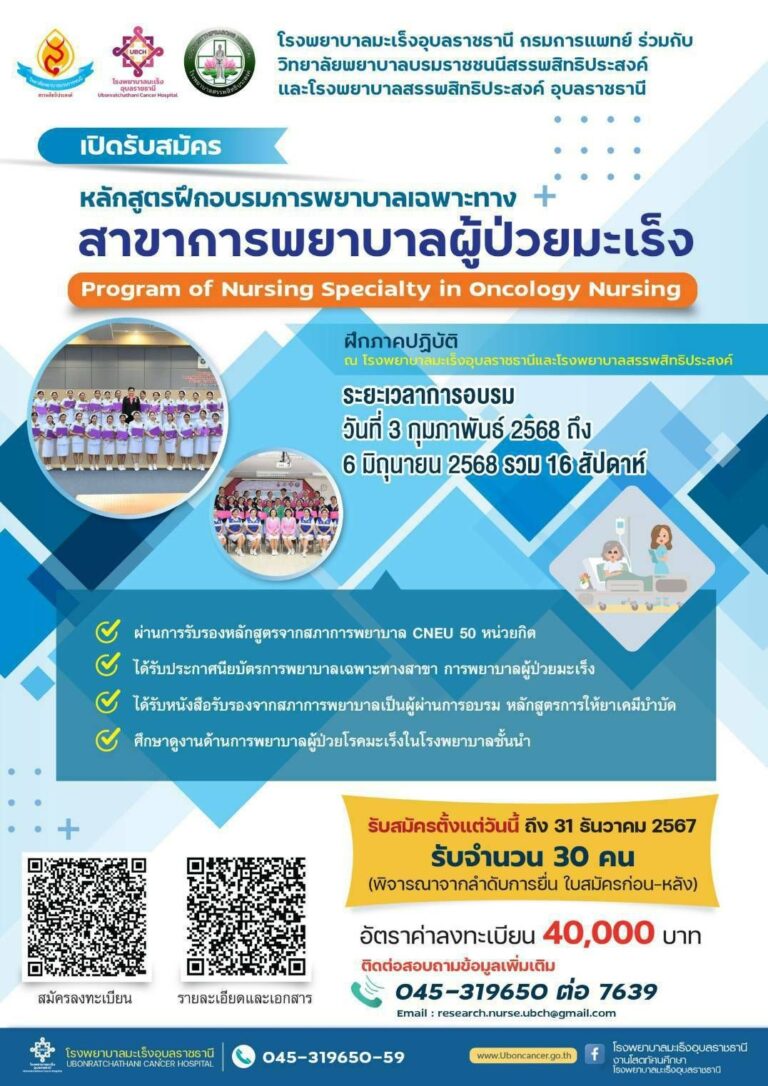 โรงพยาบาลมะเร็งอุบลราชธานี จัดโครงการวันคล้ายวันสถาปนาโรงพยาบาลมะเร็งอุบลราชธานี ครบรอบ 34 ปี (13 ตุลาคม ของทุกปี) โดยมีนายแพทย์เฉลิมพล ไชยรัตน์ ผู้อำนวยการโรงพยาบาลมะเร็งอุบลราชธานี นำทีมคณะผู้บริหารแพทย์หญิงชุติวรรณ วิวัฒนาสิทธิพงศ์ รองผู้อำนวยการด้านการแพทย์ ดร.ชลิยา วามะลุน รองผู้อำนวยการด้านการพยาบาล นายอรรถวิทย์ ภักดี รองผู้อำนวยการด้านอำนวยการ แพทย์หญิงดาริกา ดาโรจน์ รองผู้อำนวยการด้านการพั