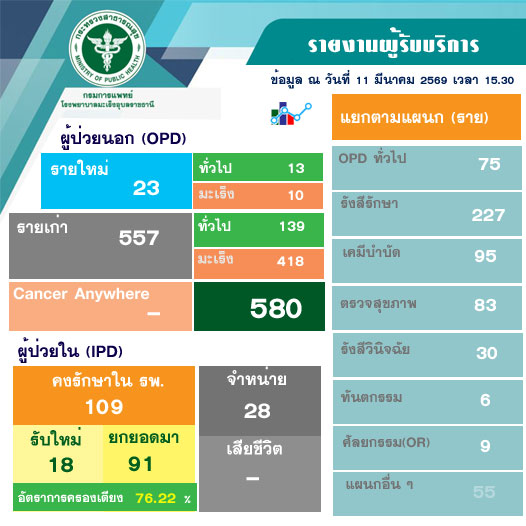 ผู้มารับบริการโรงพยาบาลมะเร็งอุบลราชธานี ณ วันที่ 11 มีนาคม 2569