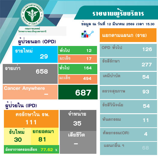 ผู้มารับบริการโรงพยาบาลมะเร็งอุบลราชธานี ณ วันที่ 12 มีนาคม 2569