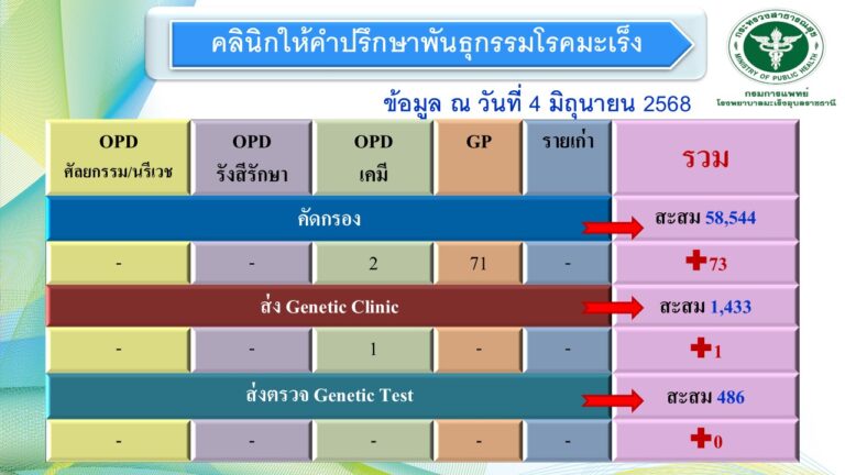 รายงานคลินิกให้ปรึกษาพันธุกรรมโรคมะเร็ง รพ.มะเร็งอุบลราชธานี 4 มิถุนายน 2568