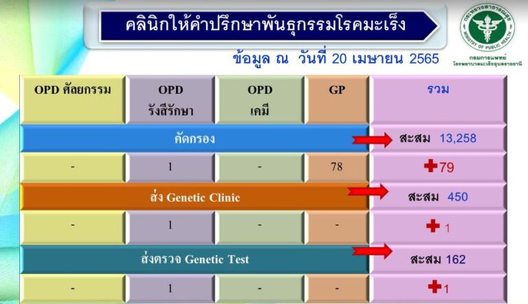 รายงานคลินิกให้ปรึกษาพันธุกรรมโรคมะเร็ง รพ.มะเร็งอุบลราชธานี 20 เมษายน 2565