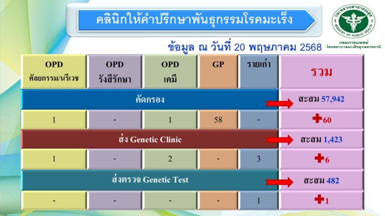 รายงานคลินิกให้ปรึกษาพันธุกรรมโรคมะเร็ง รพ.มะเร็งอุบลราชธานี 20 พฤษาคม 2568