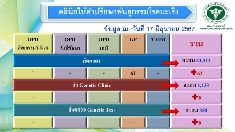 รายงานคลินิกให้ปรึกษาพันธุกรรมโรคมะเร็ง รพ.มะเร็งอุบลราชธานี 17 มิถุนายน 2567