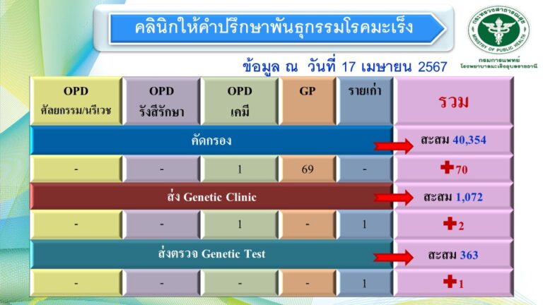 รายงานคลินิกให้ปรึกษาพันธุกรรมโรคมะเร็ง รพ.มะเร็งอุบลราชธานี 17 เมษายน 2567