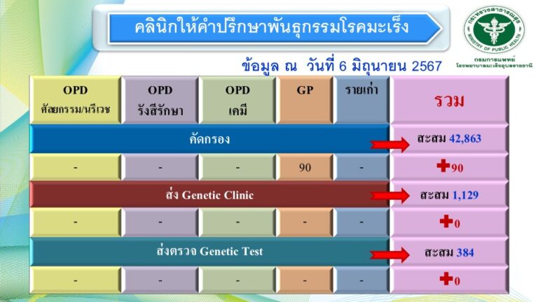 รายงานคลินิกให้ปรึกษาพันธุกรรมโรคมะเร็ง รพ.มะเร็งอุบลราชธานี 6 มิถุนายน 2567