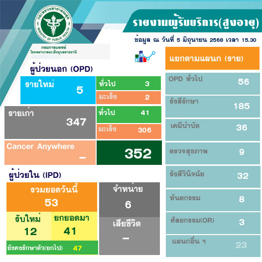 ผู้มารับบริการโรงพยาบาลมะเร็งอุบลราชธานี ณ วันที่ 5 มิถุนายน 2568