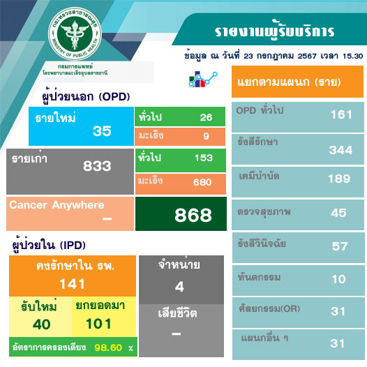 ผู้มารับบริการโรงพยาบาลมะเร็งอุบลราชธานี ณ วันที่ 23 กรกฎาคม 2567