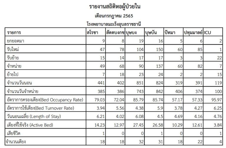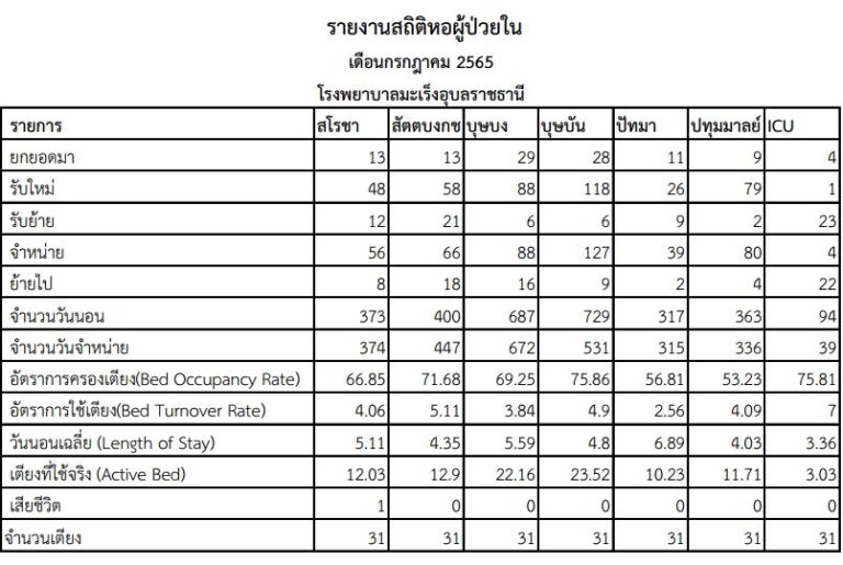 สถิติผู้ป่วยในเดือนกรกฎาคม 2565 แยกตามหอผู้ป่วย