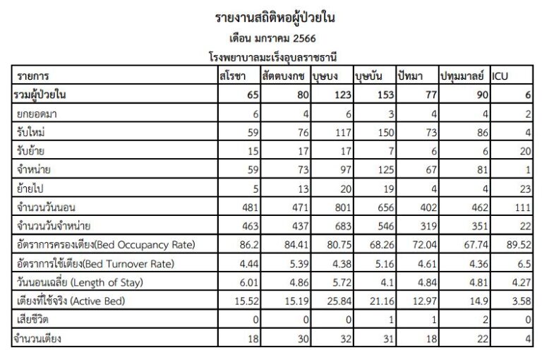 สถิติผู้ป่วยในเดือนมกราคม 2566 แยกตามหอผู้ป่วย