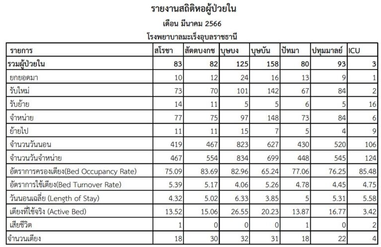 ผู้ป่วยในแยกหอผู้ป่วยมีนาคม 2566