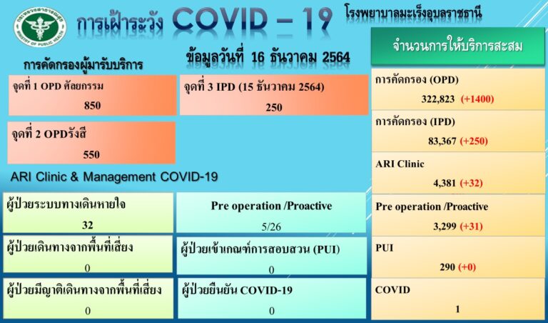 รพ.มะเร็งอุบลราชธานี รายงานเฝ้าระวังโควิด-19 วันที่ 16 ธันวาคม 2564