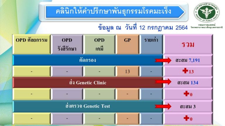 รายงานให้คลินิกปรึกษาพันธุกรรมโรคมะเร็ง วันที่ 12 กรกฏาคม 2564