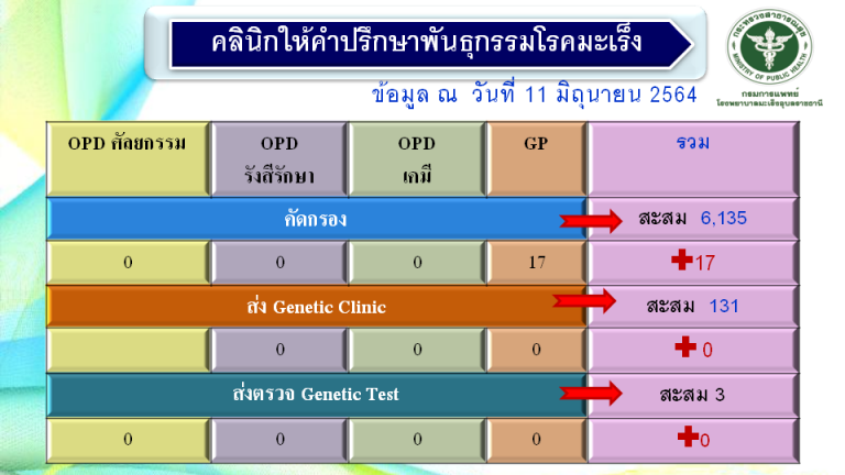 รายงานให้คลินิกปรึกษาพันธุกรรมโรคมะเร็ง วันที่ 11 มิถุนายน 2564