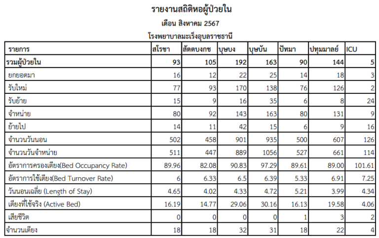 ผู้ป่วยในแยกหอผู้ป่วย สิงหาคม 2567