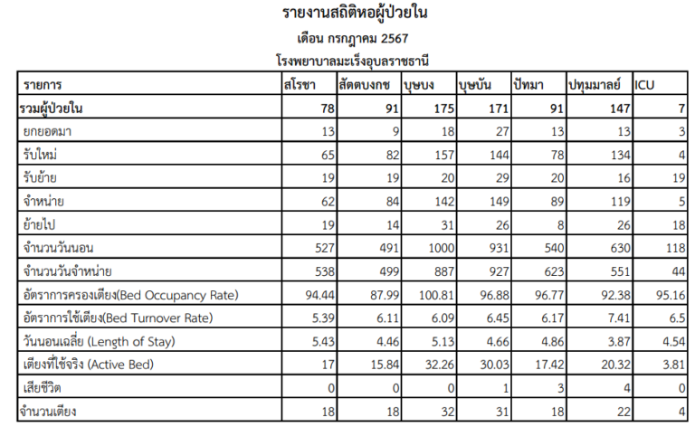 ผู้ป่วยในแยกหอผู้ป่วย กรกฎาคม 2567