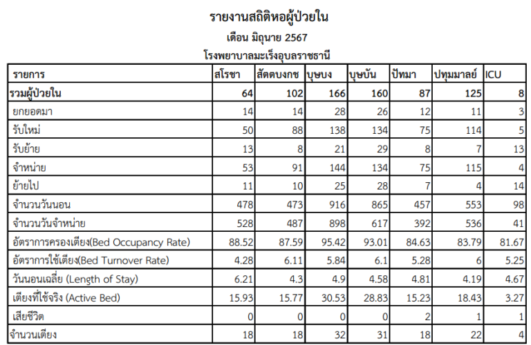 ผู้ป่วยในแยกหอผู้ป่วย มิถุนายน 2567