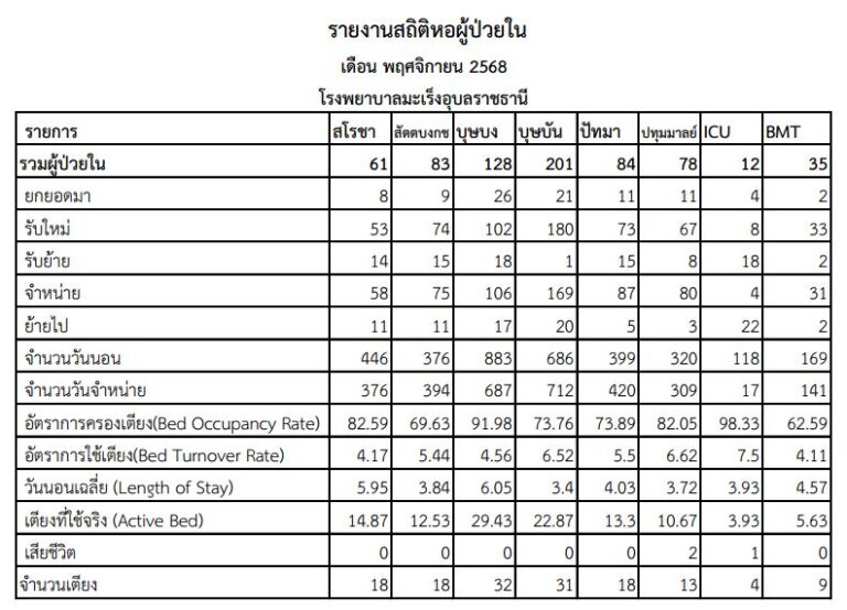 ผู้ป่วยในแยกหอผู้ป่วย ธันวาคม 2567